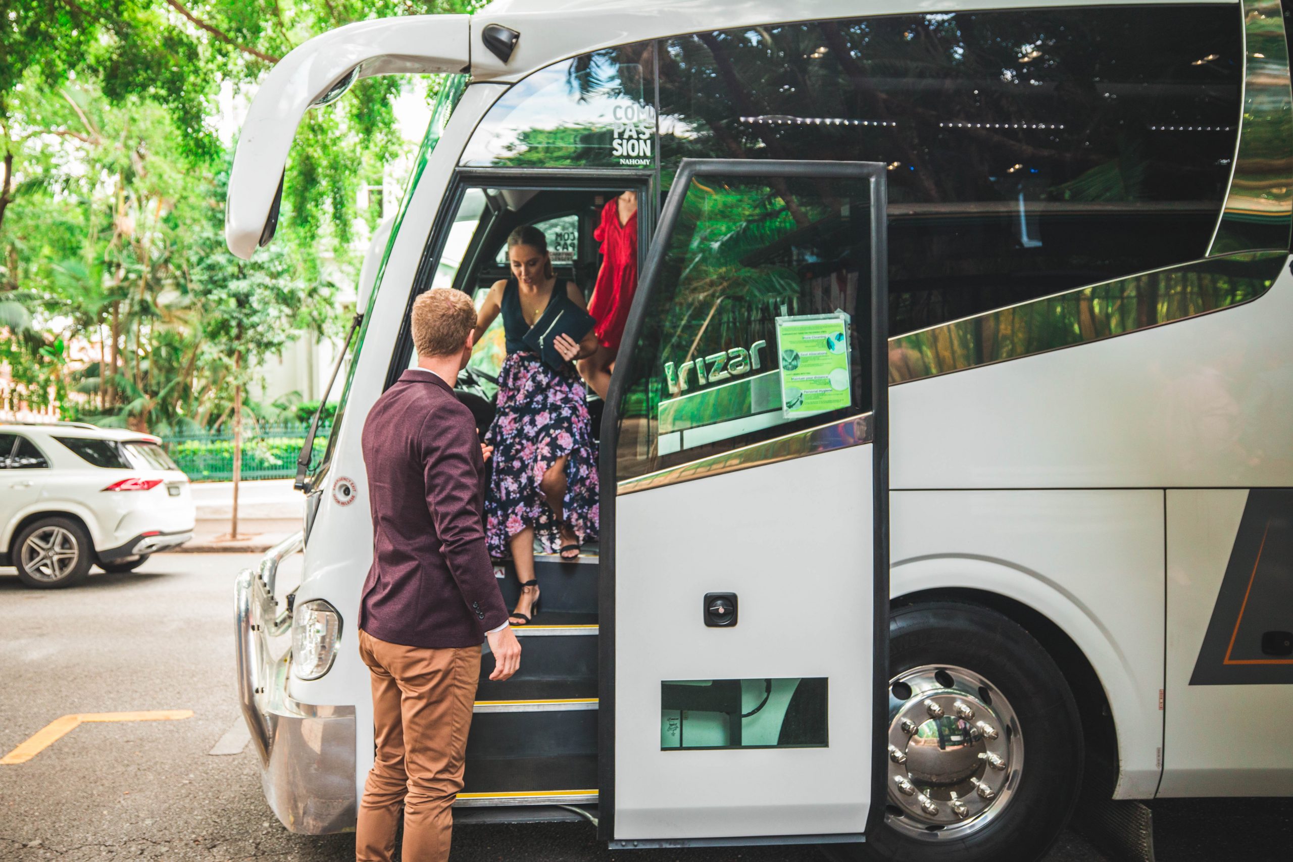 A friend of mine had used Barnabus for her wedding and recommended them to me. Alex drove myself and my bridal party from pickup from the house to the ceremony, then from ceremony to the coast where we relaxed in the afternoon before then getting back on the bus and going to the dinner reception venue. Alex was cool, relaxed, and put us at ease with his sense of humour. He took care of the details including putting our wedding decor on his bus, and was thorough in checking that we didn’t leave anything behind between each of the stops. The bus we were on had clean upholstery, was spacious and comfortable. I’d be looking to Barnabus again in the future for a personable, reliable, no-fuss, classy service.